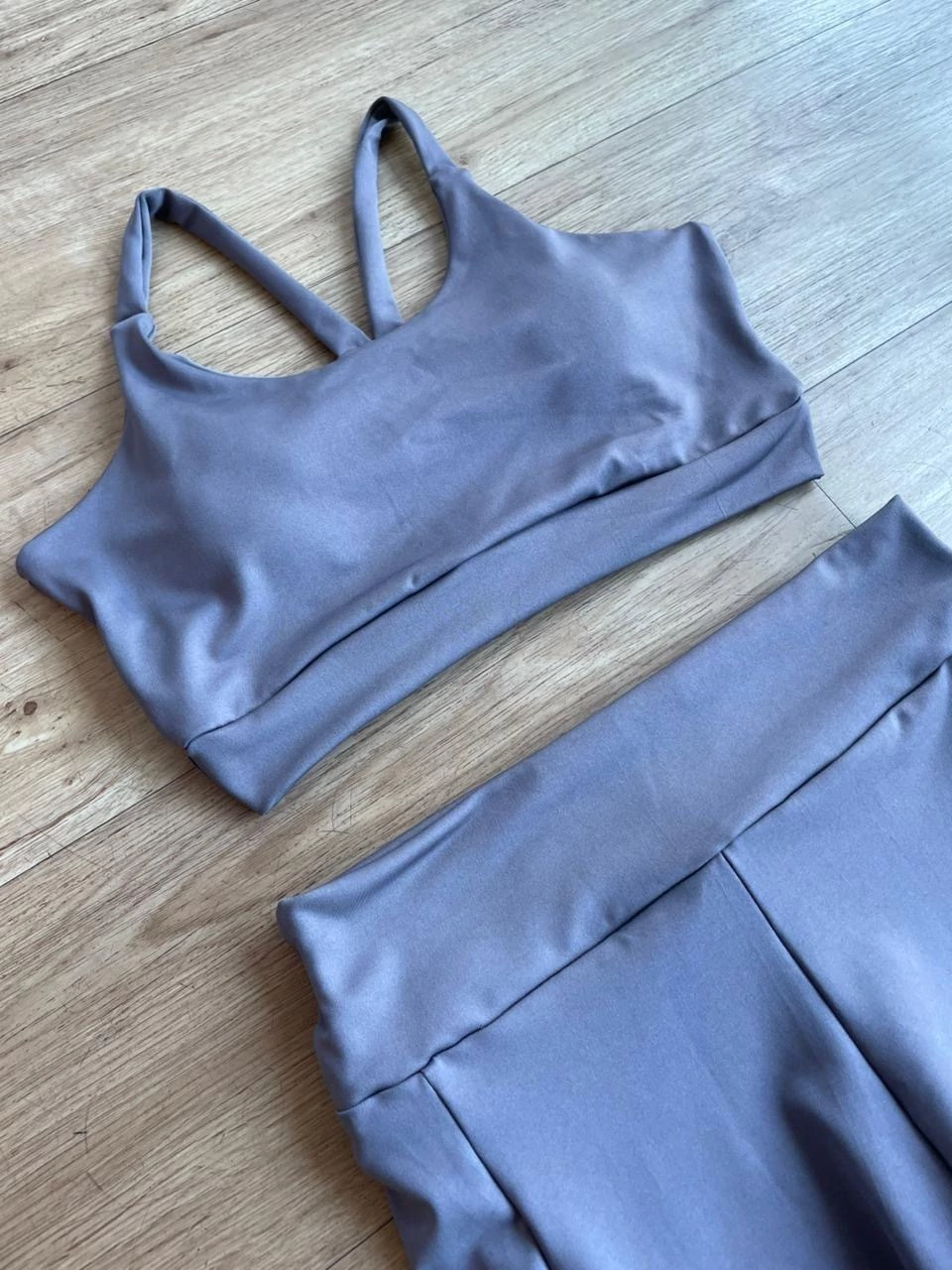 Conjunto Suplex Cinza Short Com Bolsos + Top Com Bojo
