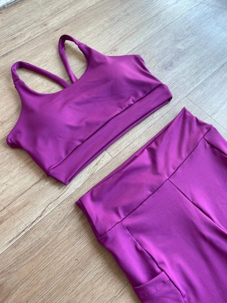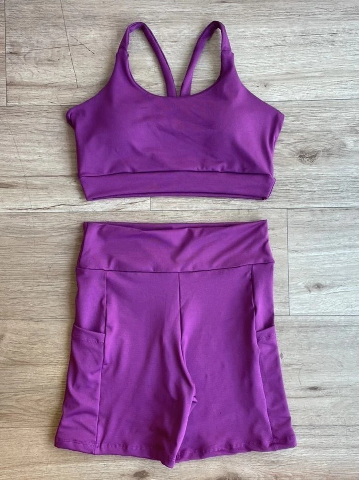 Conjunto Suplex Roxo Short Com Bolsos + Top Com Bojo