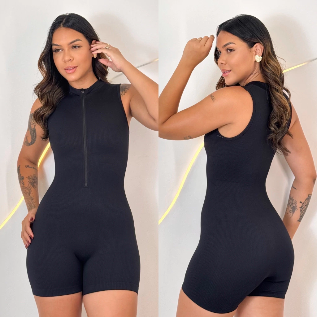 Este macaquinho apresenta um tecido malha canelada que proporciona toque macio e ótimo caimento ao corpo, ideal para o dia a dia. Seu design moderno conta com modelo com zíper, facilitando o vestir e ajustando perfeitamente ao seu estilo.